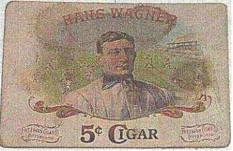 From time to time, one sees offered for sale or auction this Freeman Cigar Co. card depicting the legendary early 20th century baseball short stop Honus (Hans) Wagner. If offered as vintage (as it nearly always is), it is a fake. The card was made in the 1990s. It has a computer printed image on paper, pasted to cardboard stock.
