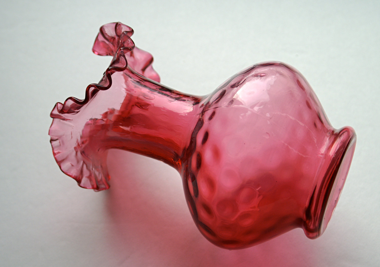 Vaseline glass is a nickname given to uranium glass that is transparent and with a yellow or yellow-green tinge. It got its nickname as some thought it resembled vaseline. However, some call any kind of uranium glass vaseline glass, some say vaseline glass can only be yellow and some call any kind of transparent yellow glass vaseline glass even if there is no uranium salt content. Some collectors and dealers label that syrup pitcher vaseline glass, while others would not because it’s not yellow. The latter would call it simply uranium glass.