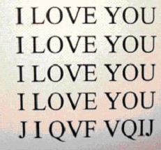 Similar to the overlapping cards and ‘I Love You’ pictures, we imagine, or guess, there to be whole letters behind the line.