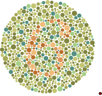 Color blindness tests show that objects of certain colors can hide from view from those with limited color vision. People with poor color vision cannot make out the letter or number symbols that those with good color vision can see. This is a form of camouflage.